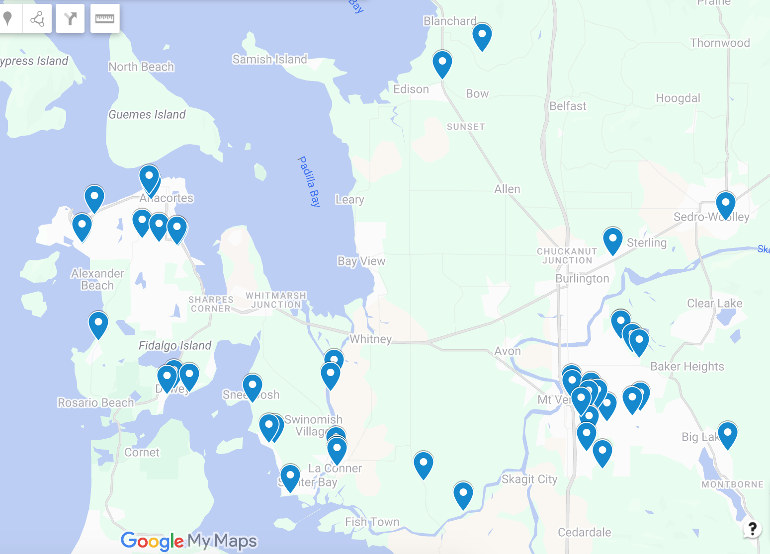 Solarize Skagit has successfully made 46 community-driven solar installations across Skagit Valley, shown in the image below.